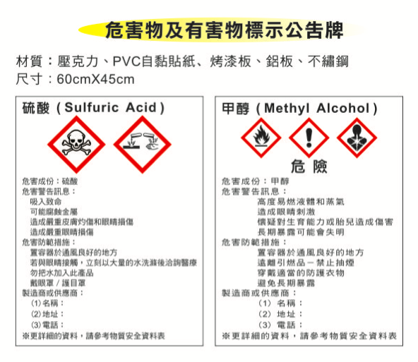 安全衛生標示 / GHS標示牌、SDS資料存放架